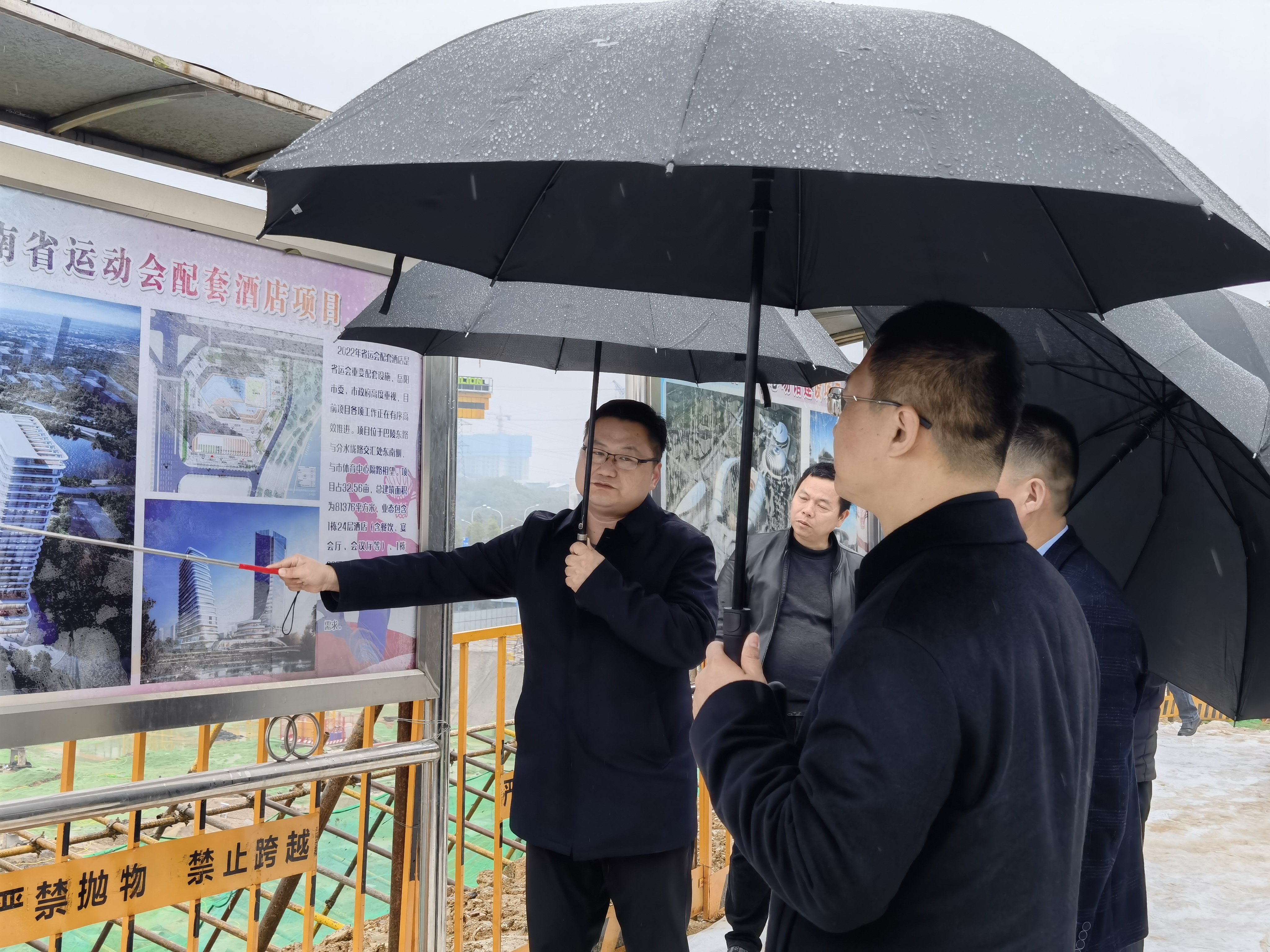 在岳陽市體育中心項目現(xiàn)場,副省長謝衛(wèi)江一行聽取了工程情況匯報,并進行了實地查看,每到一處,都詳細(xì)了解項目進展、質(zhì)量安全等情況,對該項目的管理工作給予了充分肯定。他強調(diào)要狠抓落實、加強協(xié)同,在注重質(zhì)量的同時進一步加快場館建設(shè),確保第十四屆省運會如期成功舉辦。